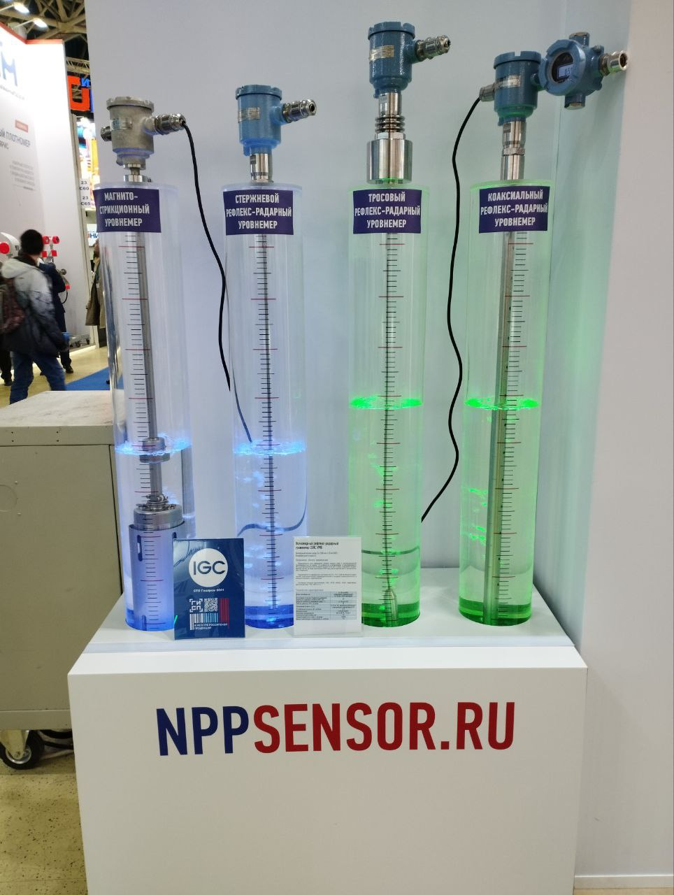На выставочном стенде НПП «СЕНСОР» были представлены образцы серийной продукции и новые технические решения. Серийно выпускаемая продукция включает в себя газосигнализаторы НКПР взрывоопасных газов, устройства заземления автоцистерн, измерительное оборудование для операторов АЗС и нефтехранилищ.