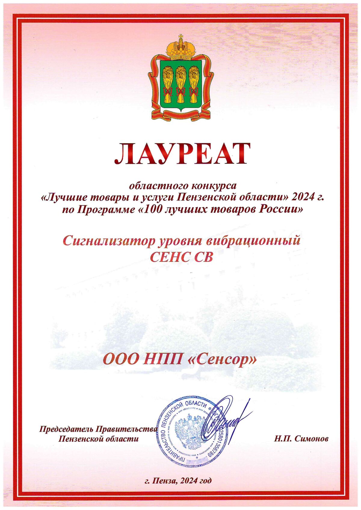 31 июля 2024 года были подведены итоги областного конкурса «Лучшие товары и услуги Пензенской области» 2024 г. по Программе «100 лучших товаров России». В этом году на конкурс ООО НПП «СЕНСОР» представило многоканальные сигнализаторы МС-К-500-ТС, сигнализаторы уровня вибрационные СЕНС СВ, устройства заземления автоцистерн УЗА-М-2Р, которые стали лауреатами в номинации «Продукция производственно-технического назначения».