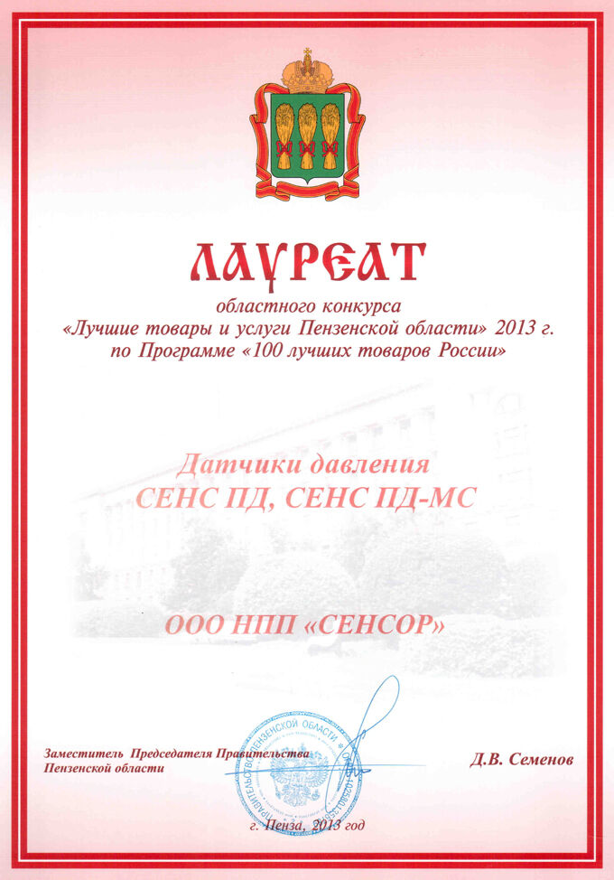 1 августа 2013 года в здании Правительства Пензенской области состоялось торжественное вручение дипломов лауреатов областного конкурса «Лучшие товары и услуги Пензенской области» 2013 по программе «100 Лучших товаров России».