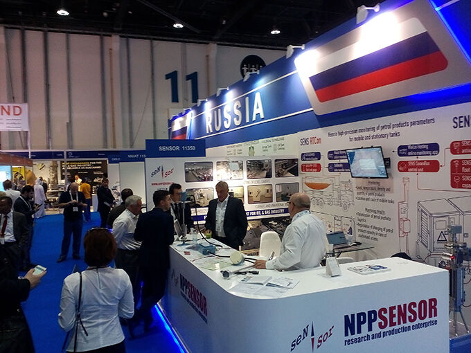 Стенд предприятия располагался в составе «Русского Павильона», объединившего несколько фирм, поставивших своей целью укрепление взаимоотношений с партнерами и поиск новых контактов в странах Персидского залива. Торговый представитель Российской Федерации в ОАЭ А. А. Меликян стал одним из первых посетителей стенда, пожелал нам успехов. ООО НПП «СЕНСОР» представило системы удаленного мониторинга параметров нефтепродуктов в передвижных и стационарных резервуарах, позволяющие их владельцам оптимизировать логистику и регистрировать изменения количества нефтепродуктов.