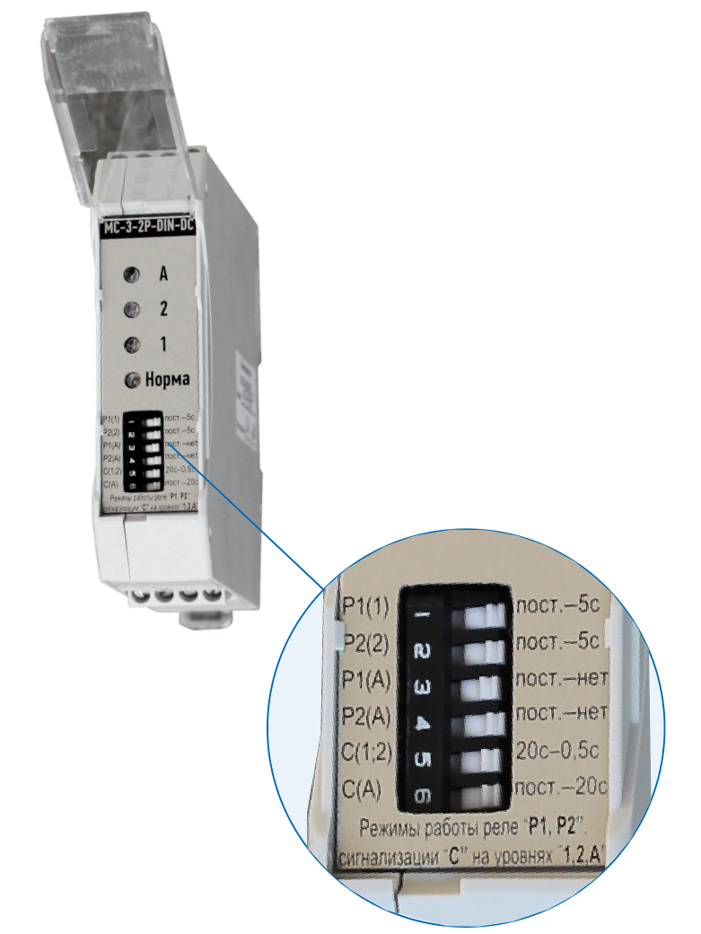 В сигнализаторе МС-3-2Р-DIN-DC предусмотрена настройка алгоритма сигнализации и срабатывания реле, которая позволяет: